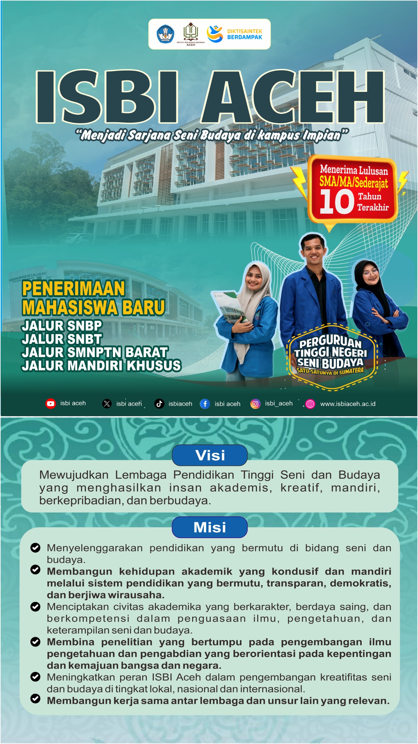 Berita ISBI Aceh Buka Penerimaan Mahasiswa Baru Melalui Berbagai Jalur Seleksi Januari 23, 2026 Tidak ada komentar
