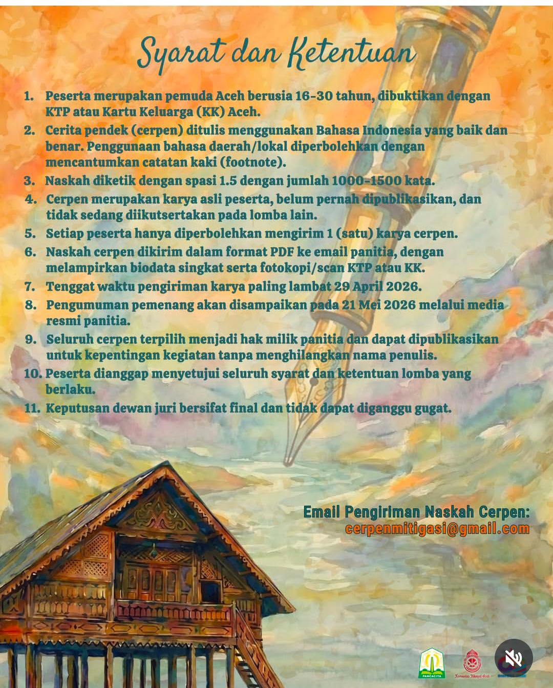 Adapun batas akhir pengiriman karya ditetapkan pada 29 April 2026. Sementara itu, pengumuman pemenang akan disampaikan pada 21 Mei 2026 melalui media resmi panitia.
