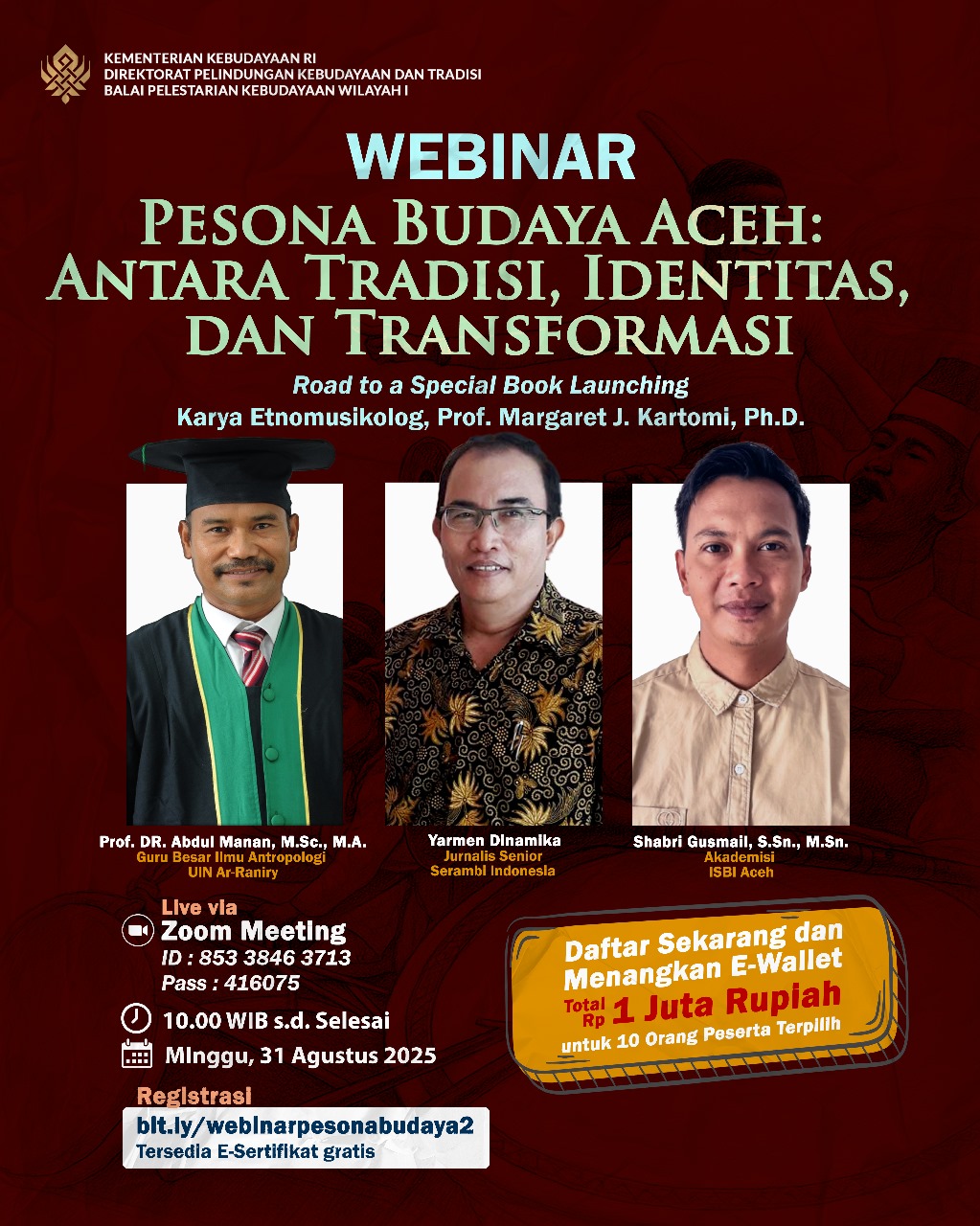 Webinar ini menjadi ajang diskusi penting dalam memahami kekayaan budaya Aceh serta dinamika transformasinya dalam konteks kekinian.